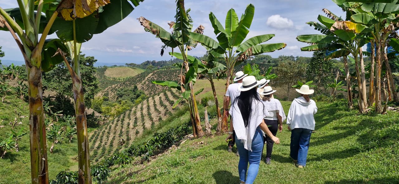 Your journey begins walking through the coffee plantations, surrounded by mountains and fresh air. As you move along the paths of the farm, you observe the coffee trees filled with small cherries growing among bright green leaves.